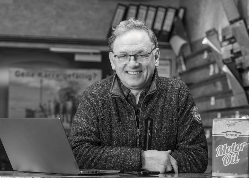 Im Jahr 2025 hat sich Rüdiger bei uns beworben, eigentlich für Büroarbeiten. Doch schon bald wurde klar, dass andere Aufgaben bei uns für ihn viel besser geeignet sind. Seitdem unterstützt er Uwe und Kurt bei den Hofarbeiten, sorgt dafür, dass alles ordentlich und ansprechend aussieht, macht Fotos der Fahrzeuge für das Netz und unterstützt den Autoverkauf sowie den Verkauf von Gebrauchtteilen. All das macht er mit großer Motivation und stets einem Lächeln, sodass wir heute wirklich glücklich darüber sind, dass er Teil unseres Teams ist.