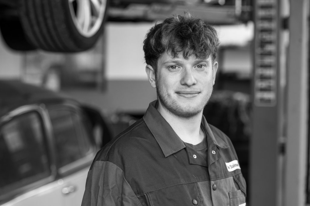 Mika ist im zweiten Lehrjahr und absolviert seine Ausbildung zum Kfz-Mechatroniker in der Fachrichtung System- und Hochvolttechnik. Er arbeitet zuverlässig, interessiert und bringt eine große Lernbereitschaft mit. Durch seine ruhige Art und sein technisches Verständnis fügt er sich sehr gut ins Werkstattteam ein und entwickelt sich stetig weiter.